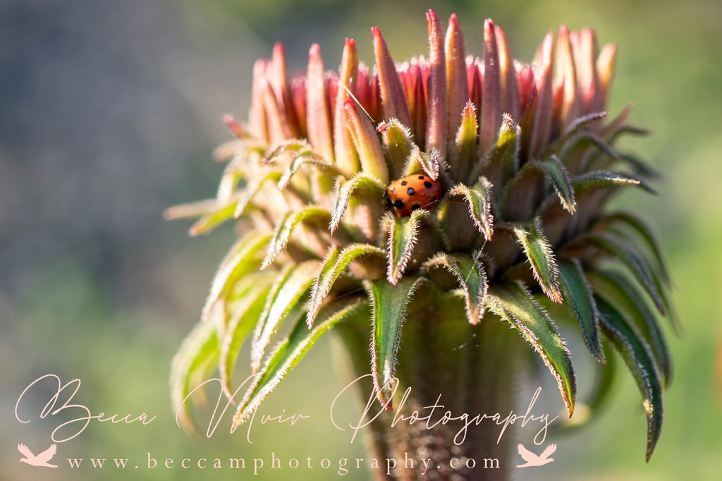 I hope you enjoy my first photo with my new signature and name update. Every time I look at this same Echinacea bud there seems to be an insect of some sort hiding on it.