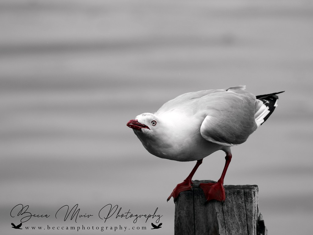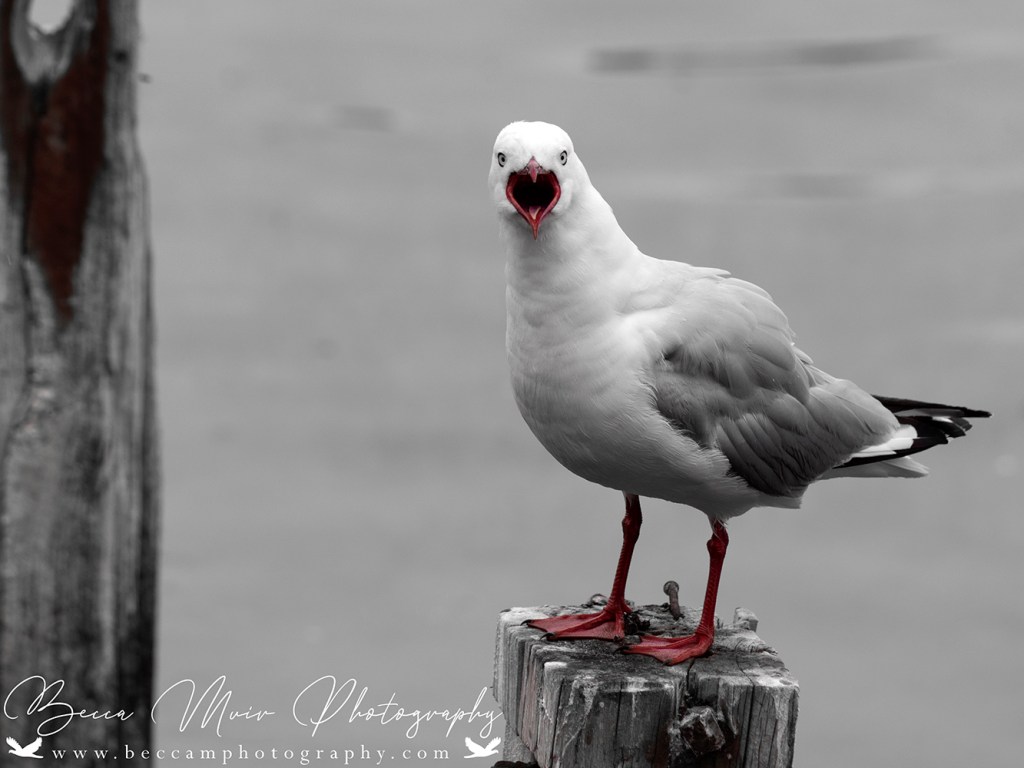 The classic red-billed gull or tarāpunga, (also known as silver gull, tarapunga, mackerel gull, Jackie (Chathams), akiaki, seagull, redbilled gull, red billed gull), are found in most coastal locations throughout New Zealand. They are also commonly found in towns, scavenging on human refuse and offal from fish and meat processing works. They are seldom found inland.